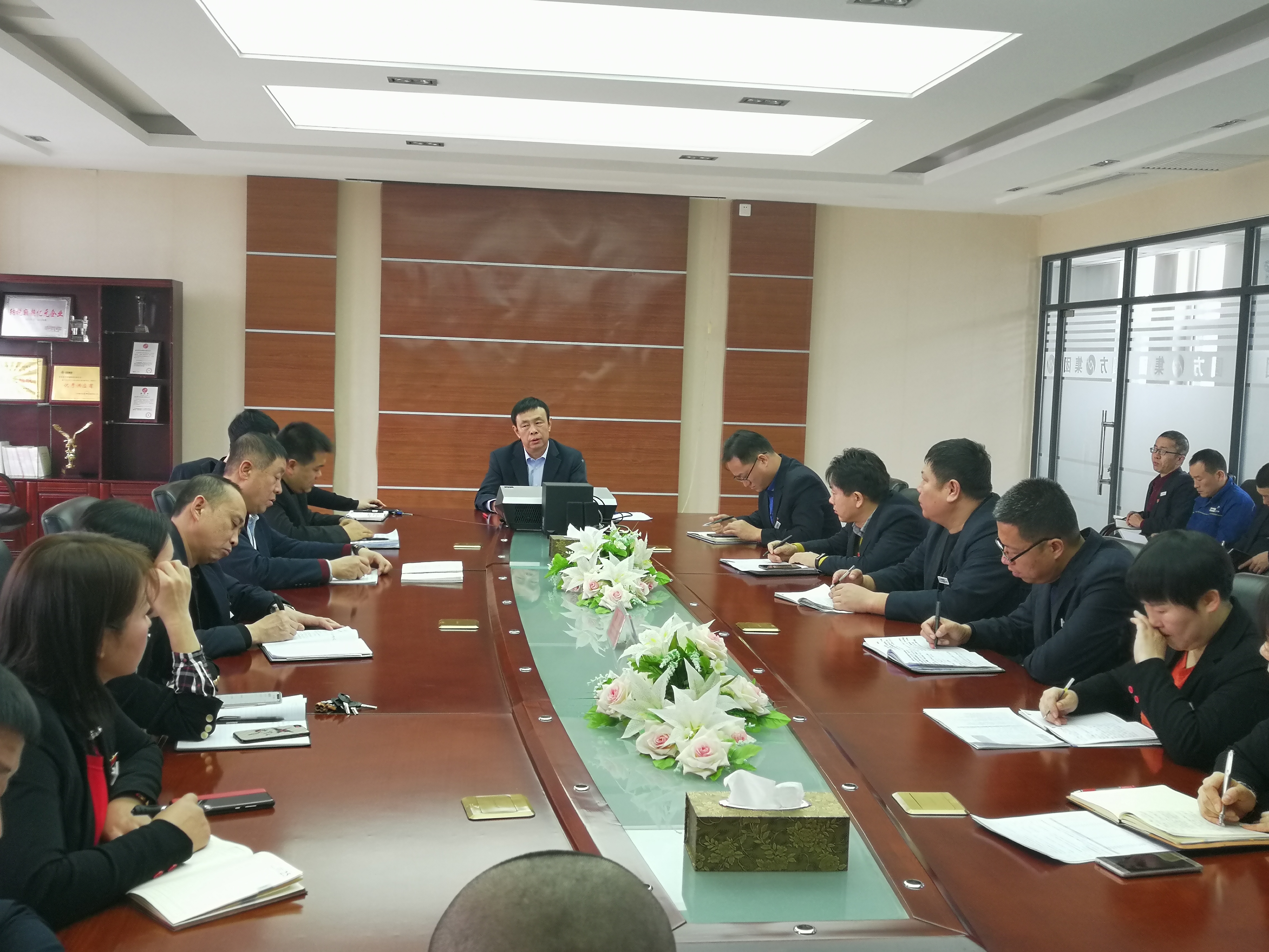 新年伊始,圓方逐夢發展再出發。1 月6 日上午,元旦佳節剛過,董事長鐘景旭參加了今年公司第一次生產調度會議。會上,對公司全年工作進行全面部署,明確了發展方向。強調指出,當前圓方已經進入轉型升級發展新時期,站上了新的經營目標臺階,面臨著新的歷史發展機遇,全體干部要居安思危、未雨綢繆、戰略謀劃今年及未來的工作。以“用國際化視野做強做大圓方”統領公司一切工作。緊緊抓住市場機遇,加快發展自己,做強做大自己??繄A方實力,堅定的在激烈市場競爭中穩定前行。會議由總經理張學良主持,全體中層以上管理干部參加會議。