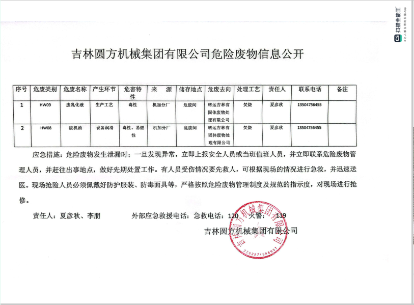 2025年公司危險(xiǎn)廢物信息公示